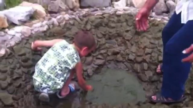 Живу в Сибири. Дедушка с внуком сидят у пруда.