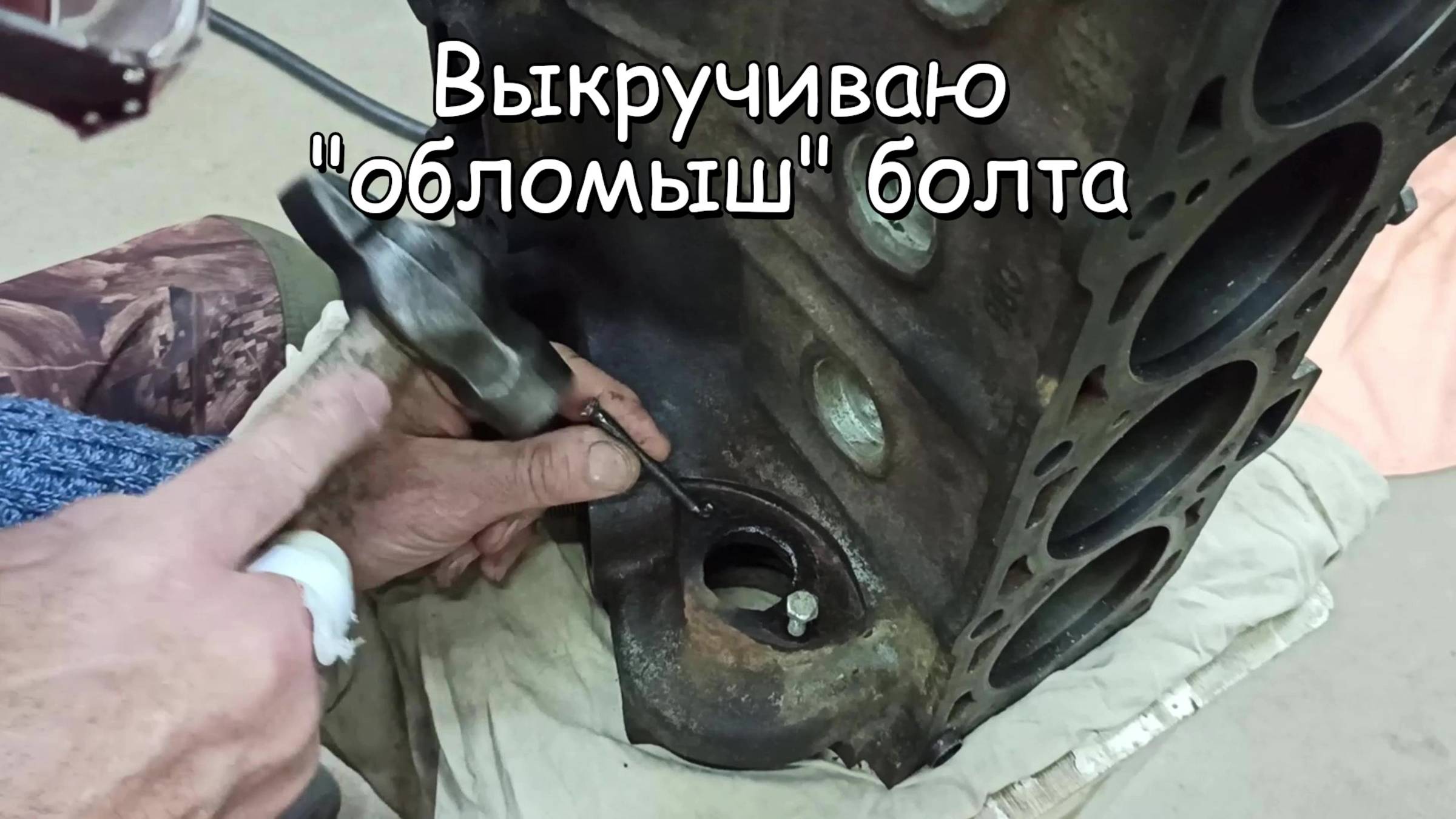 Подержанный автомобиль в личном пользовании. Гаражные истории. Нередки случаи, когда в теле блока обламывается какой-нибудь болт крепления. Зацепиться за него невозможно, вот и приходится изобретать всевозможные методы для извлечения "обломыша". Один из таких способов я и продемонстрировал в этом коротком видео. Молоток, керн и немного терпения - вот и все, что для этого потребовалось.