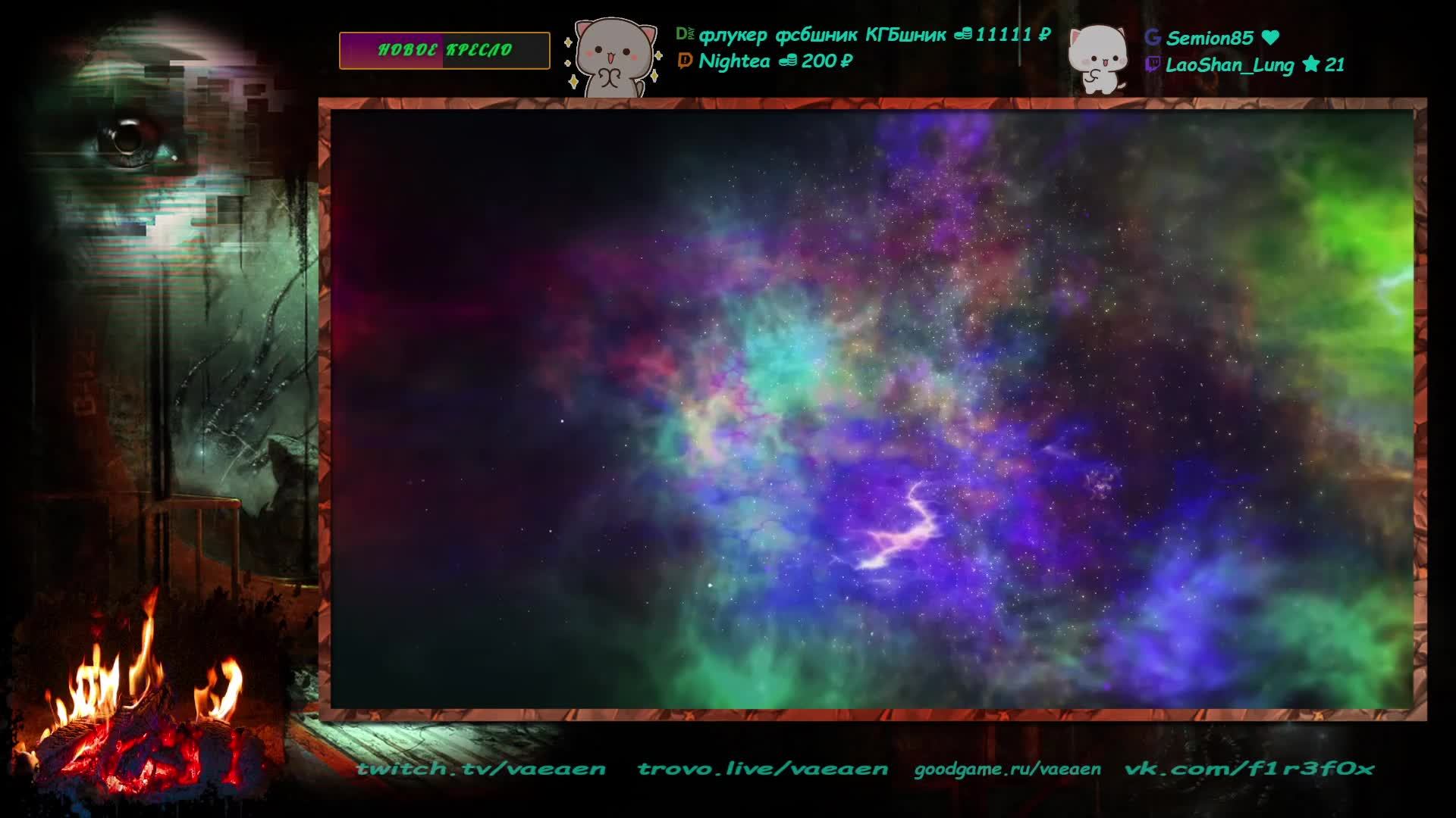 Если хотите поддержать меня как стримера - нажмите по данной ссылке https://www.donationalerts.com/r/f1r3f0x Donate for USD, EU all world - https://new.donatepay.ru/@vaeaen Во время стрима ваше сообщение появится на экране, и будет сопровождаться голосовым диктором. Поддержка на прямую: Сбер: 2202 2010 0629 1039 Тинькофф: 2200 7008 4677 0625 Основные каналы: Twitch: https://www.twitch.tv/vaeaen GoodGame: https://goodgame.ru/channel/Vaeaen/ Trovo: https://trovo.live/Vaeaen