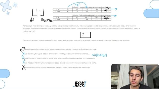 Используя термометр и часы, учитель на уроке провёл опыты по исследованию температуры - №26408