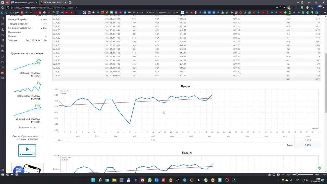 ⚡ Эти ссылки будут полезны: Сайт автора: https://trading-go.ru/?utm_source=youtube Сообщество пользователей в телеграмм: https://t.me/tradinggoea Бесплатный доступ: https://t.me/tradinggoea/98301 ️ VPS Сервер: https://trading-go.ru/hostings/vps/vps-trading-go/?utm_source=youtube Легкий курс программирования роботов: http://mql-master.ru/?utm_source=youtube Группа разработка роботов: https://t.me/mqlmasters Альтернатива YouTube: https://dzen.ru/trading-go.ru #трейдинг #метатрейдер #торговыйробот VR Watch list and Linker – советник для связывания ( Links - линковка ) открытых графиков в терминале MetaTrader. Программа имеет собственный “Обзор рынка” ( Watch list - Обзор рынка) который изменяет торговый инструмент в открытых графиках MetaTrader. Выбирая торговый инструмент в обзоре рынка трейдер сразу получает графики выбранного инструмента в открытых окнах терминала. Таким образом настроив несколько графиков с разными периодами и индикаторами, трейдер может максимально быстро осуществлять поиск финансового инструмента, дающего торговый сигнал по стратегии.