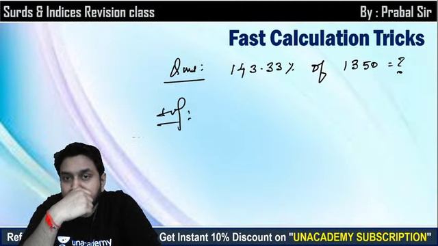 Banking Foundation Batch | Maths by Prabal Lavaniya | Calculation Tricks | @wifistudybankexams8584 🚀 Full Playlist of Prabal Lavaniya Sir: 👉🏻 https://www.youtube.com/playlist?list=PL43TZvScwYllTJQwSCVUU-rsDVpfoPVYH 🚀 Follow Prabal Sir on Unacademy: 👉🏻 https://unacademy.com/@prabal2201-5719 👉 Unacademy Educator's Feedback Form: https://bit.ly/2STTD36 Welcome to wifistudy Bank Exams YouTube Channel. Boost your exam preparation for all central and state-level banking competitive examinations with India's most trusted online education platform. Here, we will endow you with live classes for bank exams including SBI PO, SBI Clerk, IBPS PO, IBPS Clerk, IBPS RRB Clerk, IBPS RRB PO, RBI Assistant, LIC AAO, LIC ADO, and so on. Subscribe to Our New Channels: ✿ Bankers Way: https://www.youtube.com/channel/UCzdgWZfyWtkrlRUrLwWYfbw?sub_confirmation=1 ✿ wifistudy Bank Exams: https://youtube.com/channel/UCrTbT0Zf95Q4HI5IOlrfxsw?sub_confirmation=1 ✿ wifistudy Rajasthan Exams: https://www.youtube.com/channel/UCxkteJ3MMWc9eTdnNsII8BA?sub_confirmation=1 ✿ wifistudy SSC Exams: https://www.youtube.com/channel/UC_-EHaC_RePrZjRVd4lqdjw?sub_confirmation=1 ✿ Speed Maths: https://www.youtube.com/channel/UCnSRI8q1KgOftVVXaFM8v1Q?sub_confirmation=1 ✿ Maths Magic: https://www.youtube.com/channel/UCAHueV8GLLzhor6lqFwLBcg?sub_confirmation=1 ✿ Just General Science: https://www.youtube.com/channel/UCU1a_eIElXW8fdFgR-AjZLw?sub_confirmation=1 ✿ Just DI: https://www.youtube.com/channel/UCEYFrmuTmyXCy8iT1Ey_tAQ?sub_confirmation=1 ✿ Just English: https://www.youtube.com/channel/UCV74Exp8WgvJNV2nhbZ2-6Q?sub_confirmation=1 ✿ Hello Teachers: https://www.youtube.com/channel/UCoNrPU3AnFBSWQRqKju7_bw?sub_confirmation=1 ✿ wifistudy State PSC’s: https://www.youtube.com/channel/UCEKJJeC4ejlQ9gbxmQIz7AA?sub_confirmation=1 ✿ Mechanical Engineering 101: https://youtube.com/channel/UCGTmY-Yuw9d-993IpQX9d3A?sub_confirmation=1 ✿ wifistudy Engineering Exams: https://youtube.com/channel/UCM2VlaqrT6-2PZIP1CUPYbA?sub_confirmation=1 wifistudy Bank Exams is a part of the Unacademy Group. === Live Classes Schedule (Mon-Fri) from 4th Jan'21 === ✿ Morning Shows: 07:00 AM - Current Affairs Show by Ankit Gupta ✿ All Banking Exams 2020: 08:00 AM - Reasoning by Ritika Tomar 09:00 AM - Maths by Rahul Meena 12:00 PM - Maths by Prabal Lavaniya 01:00 PM - Reasoning by Himanshu Gajendra 02:00 PM - English by Anchal Singh 03:00 PM - Reasoning by Vikas Somvanshi 04:00 PM - Maths by Deepak Dixit 05:00 PM - Maths by Kumar Chandan 06:00 PM - Reasoning by Basant Tripathi 07:00 PM - Reasoning by Baljit Pratap Singh 08:00 PM - Reasoning by Sonu Kumar 09:00 PM - Computer Awareness by Vivek Pandey 10:00 PM - Maths by Tarun Agarwal ✤ Download the Unacademy Learning App Here: ➤ Android: https://goo.gl/02OhYI ➤ iOS: https://goo.gl/efbytP ✤ For More Such Classes Get Subscription Advantage: 👉 Banking Exams: http://bit.ly/2JfT7Y6 ➤ Use Referral Code: PRABALSIR To Get 10% Discount on Unacademy Subscription Unacademy Subscription Benefits: - 1. One Subscription, Unlimited Access 2. Learn from your favorite teacher 3. Real time interaction with teacher 4. You can ask doubts in live class 5. Limited students 6. Download the videos & watch offline ✿ Important Playlists: ✤ Current Affairs Show by Ankit Gupta Sir ➤ https://bit.ly/2Xg76nx ✤ Reasoning by Ritika Ma'am ➤ https://bit.ly/2TllrOH ✤ Computer Awareness by Vivek Pandey Sir ➤https://bit.ly/3cRTLbO ✤ Maths by Prabal Lavaniya Sir ➤ https://bit.ly/3eeH6Ab ✤ Reasoning by Akash Chaturvedi Sir ➤ https://bit.ly/3f1cpz3 ✤ English by Aisha Ma'am ➤ https://bit.ly/2CB1BcN ✤ Quant Question Series by Akash Sir ➤ https://bit.ly/2XRxSTN ✤ Maths by Rohit Tomar ➤ https://bit.ly/32vKCTq 👉 Download wifistudy App: http://bit.ly/2IrolwJ 👉 Follow us on Facebook: http://fb.me/wifistudy 👉 Follow us on Twitter: https://twitter.com/wifistudy 👉 Follow us on Telegram: https://t.me/wifistudy #BankExamPreparation #BankExam2020 #wifistudyBankExams #Subscription_व_Live_Classes_Schedule_in_Description