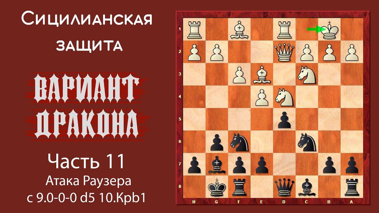 Сицилианская защита. Вариант Дракона (часть 11). Атака Раузера с 9.0-0-0 d5 10.Крb1