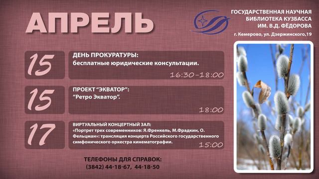 Дорогие друзья! Предлагаем Вашему вниманию анонс мероприятий, планируемых в апреле.