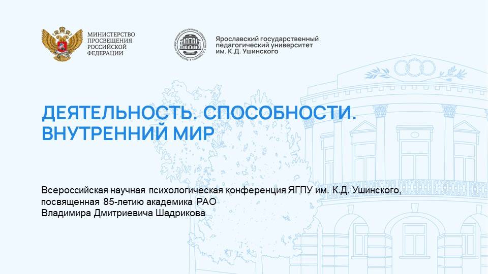 Всероссийская научная психологическая конференция ЯГПУ им. К.Д. Ушинского, посвященная 85-летию академика РАО Владимира Дмитриевича Шадрикова