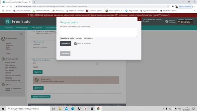 Реальная подача заявки на участие в акционе. Электронная площадка Фритрейд.
