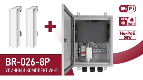 https://www.beward.ru/katalog/sistemy-peredachi-videosignala/besprovodnye-komplekty-peredachi-ip-video-po-wi-fi/br-026-8p/ https://www.beward.ru/katalog/sistemy-peredachi-videosignala/besprovodnye-komplekty-peredachi-ip-video-po-wi-fi/br-026/ 2 уличных точки доступа со встроенными направленными Wi-Fi антеннами в комплекте Всепогодный коммуникационный шкаф с подключением до 8 IP-видеокамер по PoE Диапазон рабочих температур от -40 до +50°С Беспроводная сеть с поддержкой стандартов IEEE 802.11b/g/n Сетевой интерфейс 10/100 Base-TX Ethernet Встроенная антенна с двойной поляризацией, усиление 12 дБи PoE бюджет 123 Вт суммарно на все порты Передача PoE на расстояние 250 м в режиме Extend Назначение и эксплуатация Комплект оборудования BR-026-8P – это мощное решение для организации видеонаблюдения между двумя обособленными объектами, расположенными на значительном удалении друг от друга. Отлично подходит для эксплуатации в аэропортах, торговых и развлекательных центрах, офисных зданиях и т.п. Комплект BR-026-8P позволяет подключать до 8 IP-видеокамер по PoE и передавать видео и аудио информацию по Wi-Fi на несколько километров. Для подключения по Wi-Fi посредством BR-026-8P единственным, но необходимым условием является наличие прямой видимости между точками установки антенн. Если прямой видимости нет, можно попытаться обеспечить ее, подняв антенны выше, изменив места расположения антенн, установив ретранслятор или искать другие пути решения организации связи.