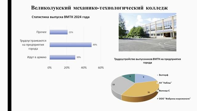 (14.3) БЫСТРОВА Ольга Дмитриевна Псковская область, г. Великие Луки МБОУ «Средняя общеобразовательная школа № 2», 10 класс ВОЗМОЖНОСТЬ ТРУДОУСТРОЙСТВА ВЫПУСКНИКОВ СРЕДНИХ ПРОФЕССИОНАЛЬНЫХ УЧЕБНЫХ ЗАВЕДЕНИЙ ГОРОДА ВЕЛИКИЕ ЛУКИ Научный руководитель: Панфилова Ольга Романовна, Псковская область, г. Великие Луки, МБОУ «Средняя общеобразовательная школа № 2», учитель экономики Более подробно о мероприятиях Программы "Шаг в будущее" можно узнать на сайтах http://www.step-into-the-future.ru/ и http://шагвбудущее.рф