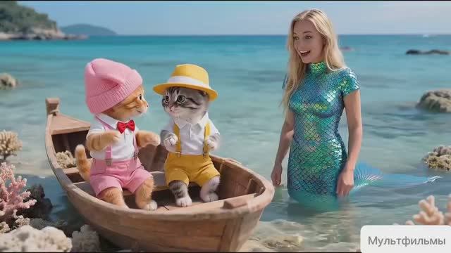 Мультфильм. Встреча котят с русалкой. Мультфильмы про котиков.