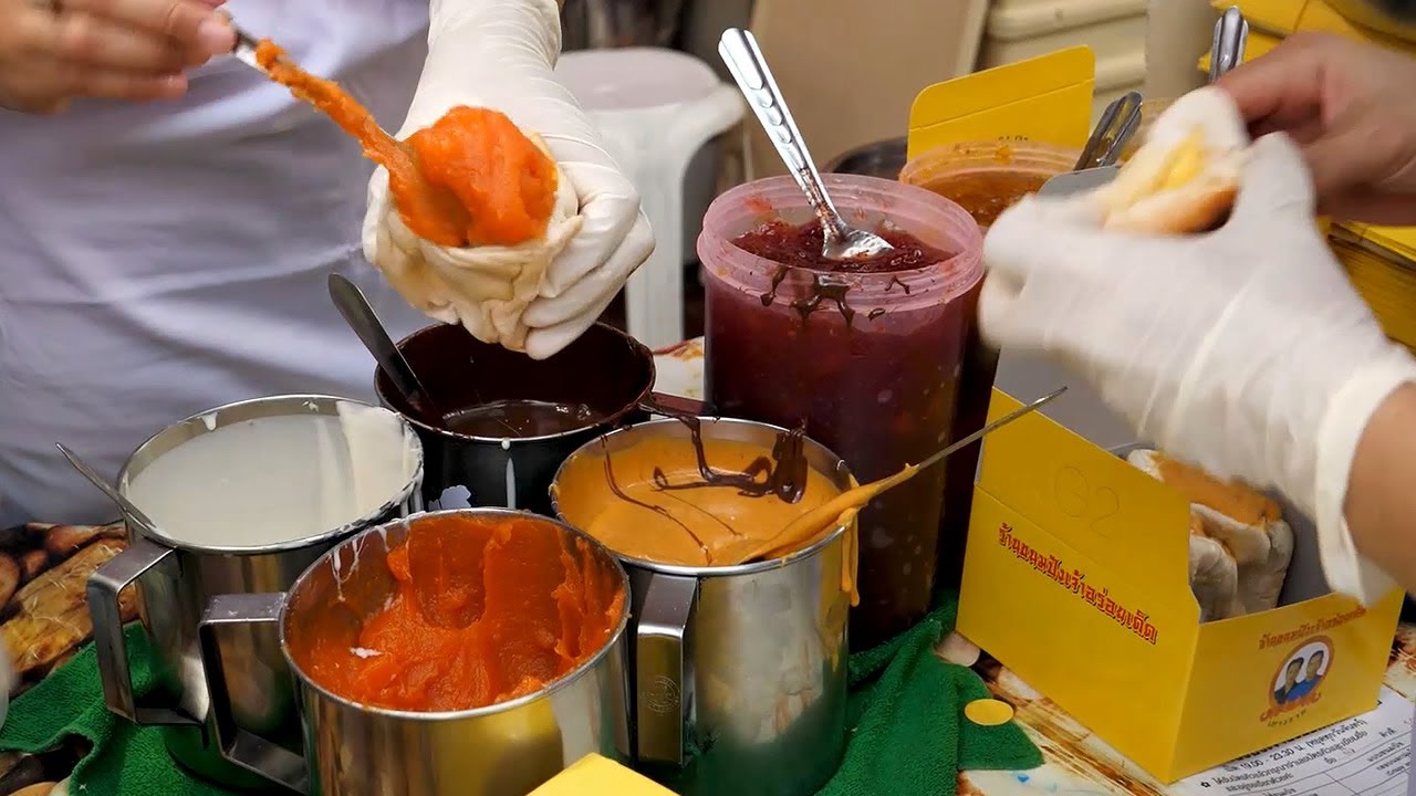Масло хлеб в Бангкоке улице пекарне - Тайская уличная еда.