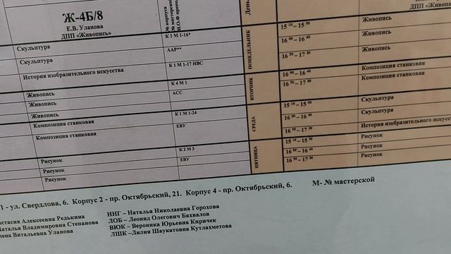 художественная школа ДШИ №1, г.Новокузнецк, расписание уроков