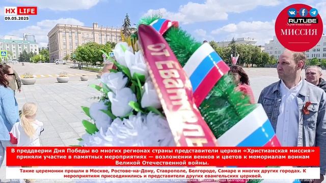 В преддверии Дня Победы во многих регионах страны представители церкви «Христианская миссия» приняли участие в памятных мероприятиях — возложении венков и цветов к мемориалам воинам Великой Отечественной войны. акие церемонии прошли в Москве, Ростове-на-Дону, Ставрополе, Белгороде, Самаре и многих других городах. К мероприятиям присоединились и представители других евангельских церквей. Эта ежегодная традиция стала добрым знаком уважения и глубокой благодарности тем, кто пожертвовал своей жизнью ради мира, свободы и будущего следующих поколений. Присутствие верующих на подобных мероприятиях — это не только акт гражданского участия, но и важное духовное напоминание: почитать подвиг — значит сохранять мир, молиться за страну и передавать память новым поколениям. ссылка: https://t.me/eparhiaonline/5698