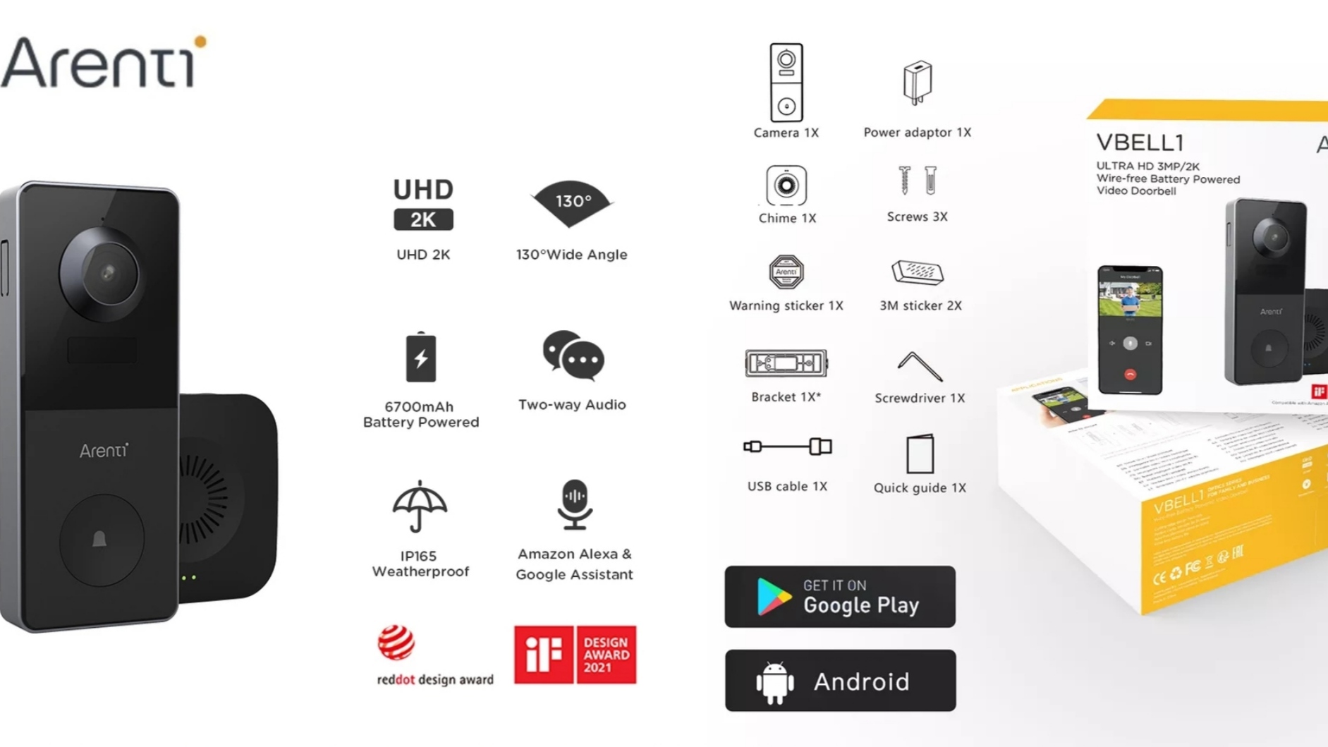 WiFi видеодомофон Arenti VBELL1 video intercom