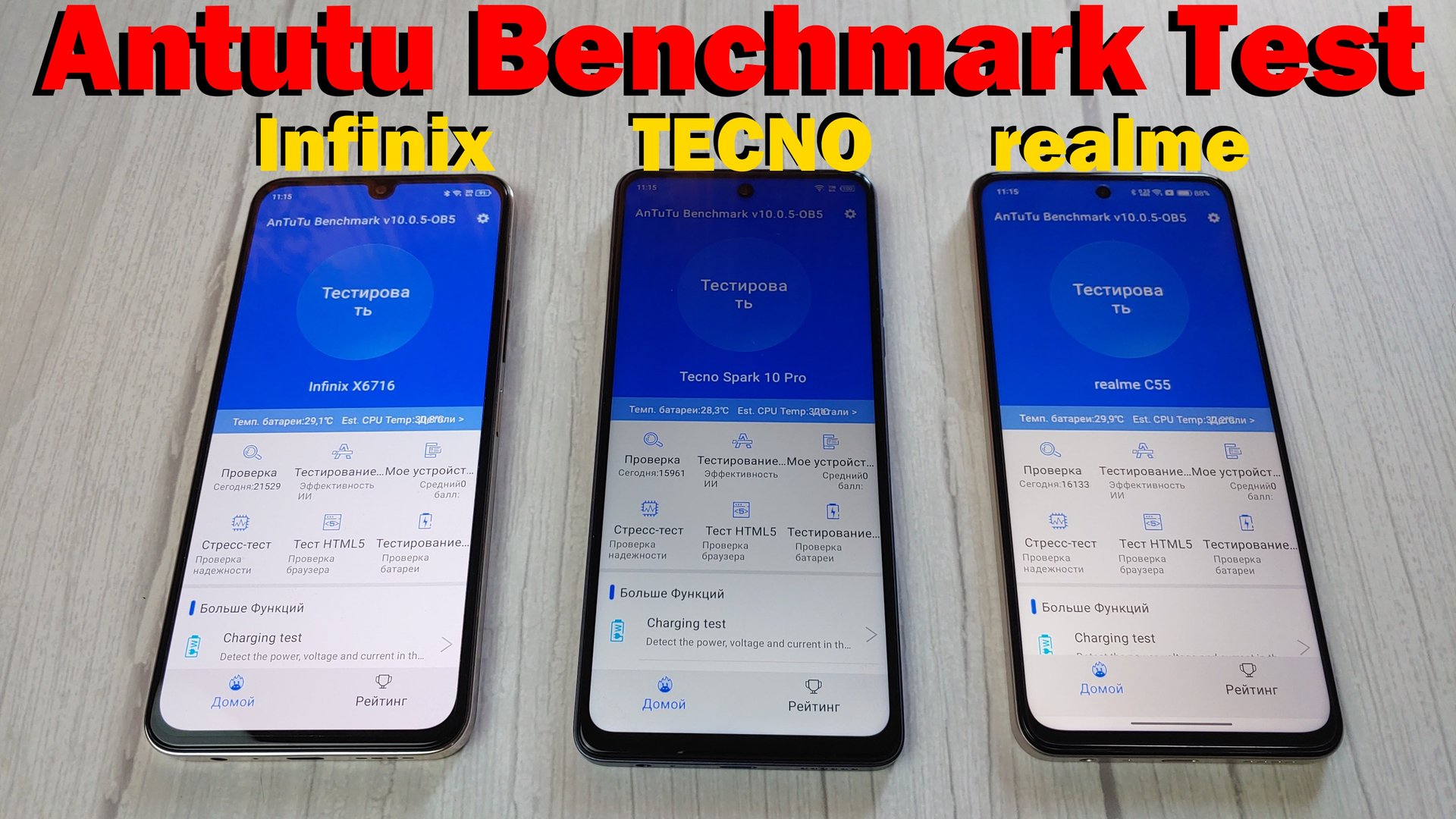 Сравнение INFINIX NOTE 30i vs TECNO SPARK 10 PRO vs REALME C55 Antutu Test