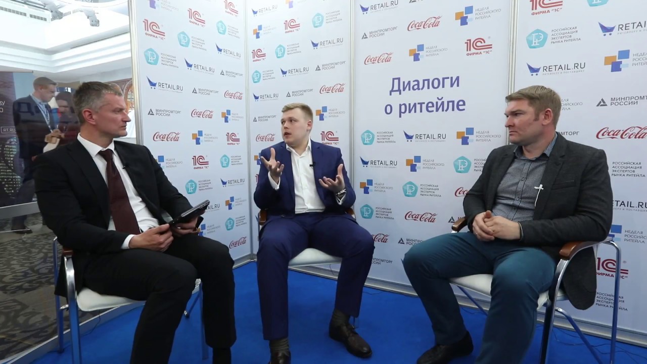 Встречу ведет Мстислав Воскресенский, на встрече Егор Ланько (Азбука Вкуса) и Максим Рогач (Юнилевер)