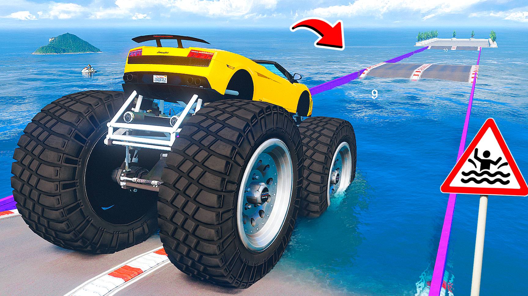 СМОЖЕТ ЛИ ГИГАНТСКАЯ ЛАМБОРГИНИ ПРОЕХАТЬ ГЛУБОКУЮ ЯМУ С ВОДОЙ В ГТА 5 МОДЫ - ЭКСПЕРИМЕНТЫ GTA 5 MODS