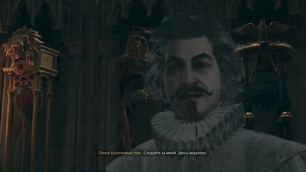 Почти безголовый Ник сопровождает нас к заданию в Hogwarts Legacy