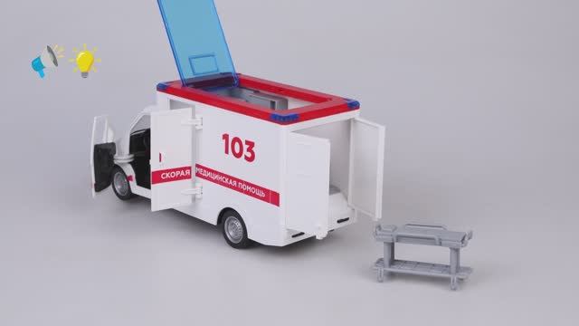 Машина Городские спасатели Скорая помощь, открываются двери, крыша, выгрузка каталки. Код: 870888