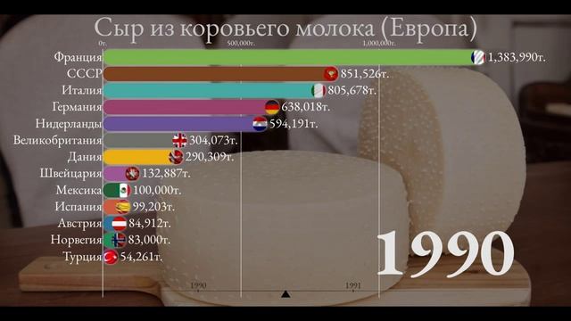 Производство сыра из коровьего молока(Европа) 1961-2020. Какое место занимает Россия?[ИНФОГРАФИКА].