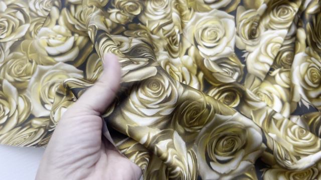 Шёлк атласный с принтом золотые розы 46543