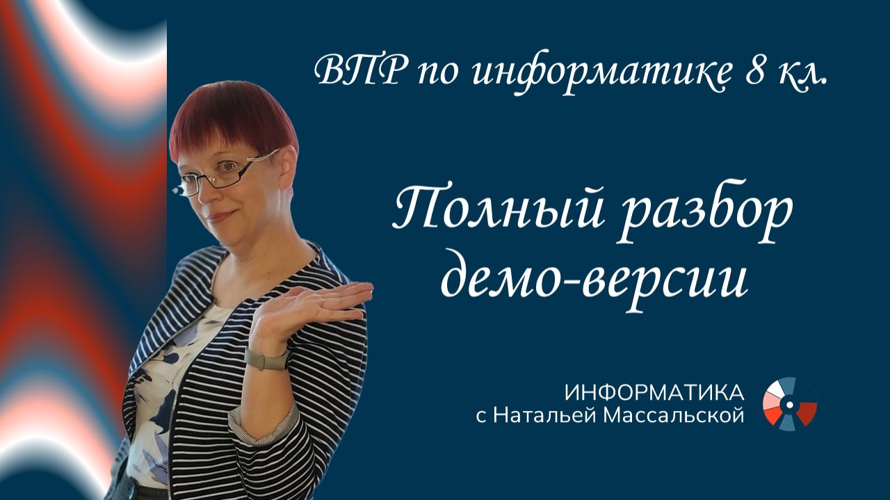Полный разбор демо-версии ВПР 8 класса по информатике 2026 года 🔸 Две части 🔸 12 задач 🔸 Системы счисления, алгебра логики, алгоритмы и чуть-чуть программирования 🔸 Практические задачи на Черепаху и Робота в КУМИРе 🔸 Трюки и тонкости 🔸 Почти 2,5 часа погружения в информатику восьмого класса ________________________________ ИНФОРМАТИКА с Натальей Массальской 🔹 Телеграм: https://t.me/informatic_nm 🔹 Sponsr: https://sponsr.ru/infonm 🔹 Rutube: https://rutube.ru/channel/24353501