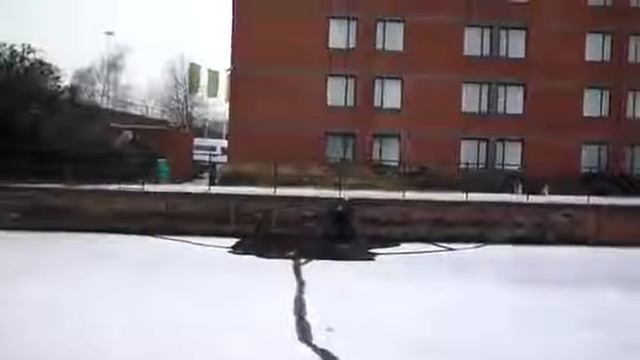 Парень решил пробежаться по замерзшему бассейну и провалился под лед!
