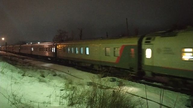 Лок. бригаде спасибо за приветствие! ТЭП70БС - 108 с поездом 142С "Таврия" Симферополь - Пермь следует по 2гл.пути. СКЖД. 27.01.24г. 22:46.