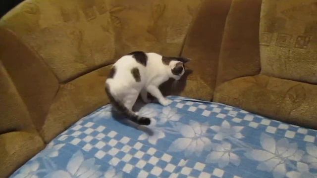 Кот помогает застилать постель. Приколы