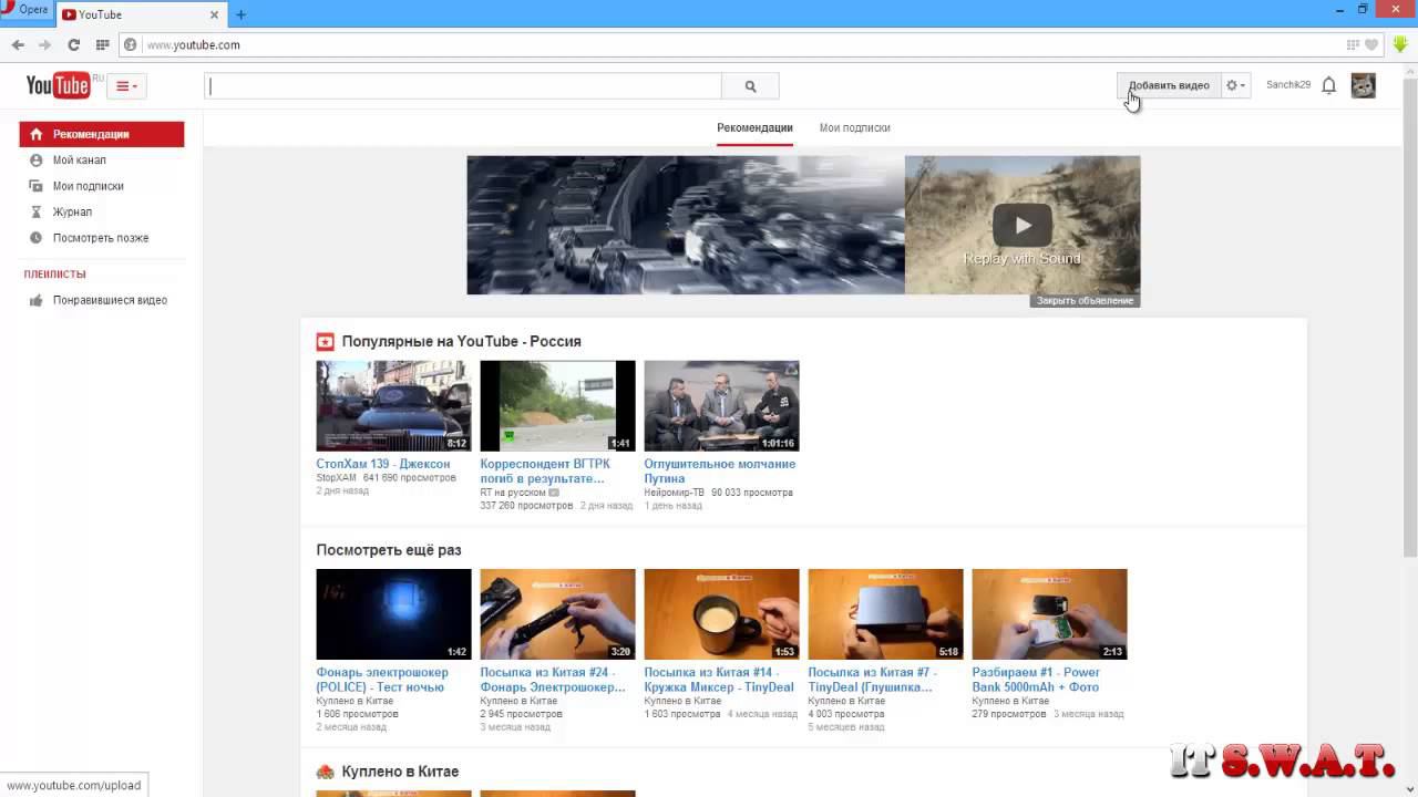 Загрузить (добавить) видео на хостинг ютуб не такая уж и сложная задача, достаточно создать свой канал, авторизоваться в системе и нажать на кнопку "Добавить видео" Как зарегистрироваться в YouTube: http://youtu.be/-Phsf_OxmtI ---------------------------------------------------------------- Защити свой компьютер при помощи полезной программы Emsisoft Anti-Malware http://goo.gl/2meoiT После установки советую использовать 30-дневную версию, если вам она понравится предоставлю ключ на более длительное время:) ---------------------------------------------------------------- Наш сайт: http://itswat.ru/ Музыка: http://goo.gl/5EXEui