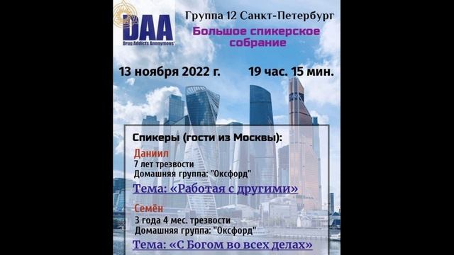 Какова история DAA? Первая группа DAA была создана в Швеции в 1997 году на основе программы Анонимных Алкоголиков. Хотя АА очень успешно помогали алкоголикам выздоравливать от алкоголизма, это сообщество было доступно только алкоголикам, а не наркоманам. DAA было сформировано как отдельное сообщество, чтобы предложить такую же успешную программу специально для наркоманов, не нарушая при этом традиций АА. DAA используют Двенадцать Шагов и Двенадцать Традиций АА так как они изложены в книге «Анонимные Алкоголики» (Большая книга АА) в качестве программы выздоровления. DAA обозначает себя как химические зависимые при изучении и применении Двенадцати Шагов АА. DAA используют книгу «Анонимные Алкоголики» в качестве основного текста, используя ее так, как она написана, не добавляя и не изменяя ее. Первая группа DAA в России была образована в 2016 году в Санкт-Петербурге, затем в 2017 году в Москве и теперь наши собрания проходят в теплой и дружественной обстановке во многих городах нашей страны, онлайн посредством ZOOM и Telegram, а также в Великобритании, Швеции и других странах мира. как с нами связаться? телефон горячей линии: +7 909 929 93 00 e-mail: daarus-info@yandex.ru наш сайт: daarus.ru