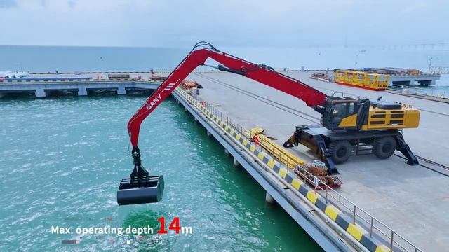 Грейферный погрузчик SANY SMHW 80 вес 78 т. вылет стрелы 22 м. Перегружатель Sany 80 будет наиболее эффективен при работе в портах, на металлургических предприятиях и ЦБП