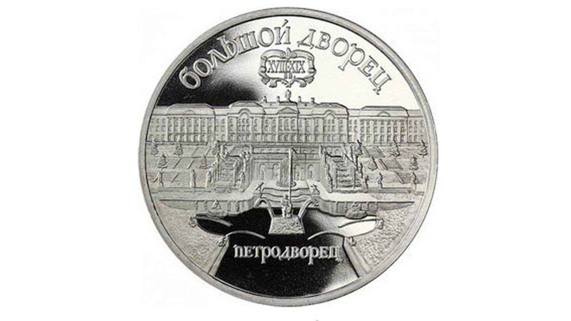 Монета 5 рублей СССР Большой дворец в Петродворце.