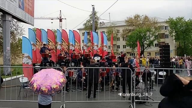 После шествия «Бессмертного полка» у Водонапорной башни в Оренбурге играет духовой оркестр.
