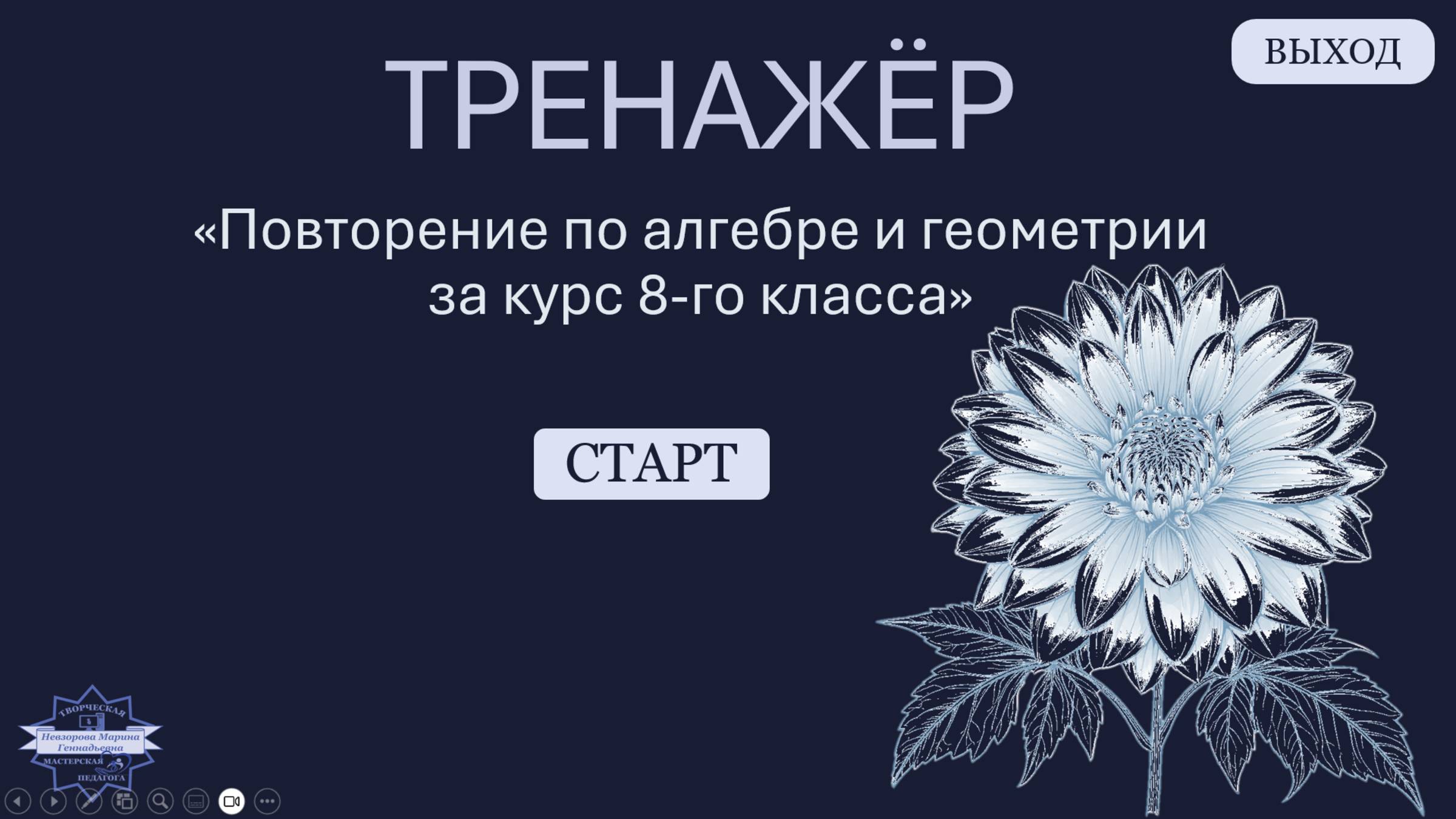 Тренажер на повторение ключевых тем по алгебре и геометрии за курс 8 класса. Power Point VBA