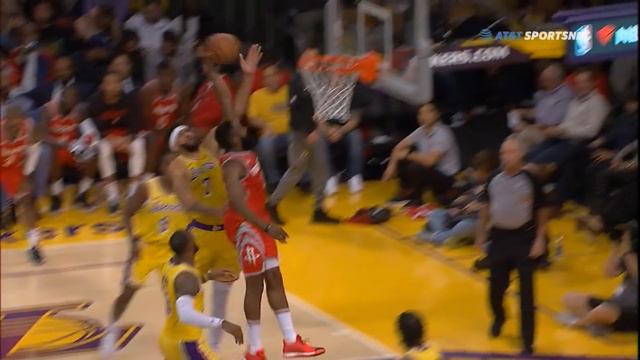 http://www.clutchfans.net James Harden blows right past LeBron James then throws down the dunk over JaVale McGee in the Houston Rockets game against the Los Angeles Lakers on 10/20/2018.