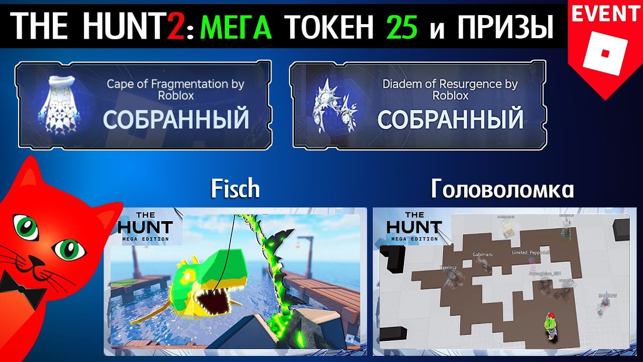 ⭐ Robuy - https://robuy.gg/c/redcat ⭐️ Телеграм - https://t.me/robuygg1 ⭐️ Группа ВК - https://vk.com/robuygg ⭐️ Розыгрыш на 200.000 робуксов - https://robuy.gg/giveaway Стань крутым и получай эксклюзивные бонусы! Будь спонсором канала - https://www.youtube.com/channel/UC7jL8M3KBSO47ke9l1os_Fg/join Спасибо за Золотую кнопку YouTube (давайте соберем 3 000 000 подписчиков). Подписаться на канал (Subscribe to channel): https://www.youtube.com/channel/UC7jL8M3KBSO47ke9l1os_Fg?sub_confirmation=1 #roblox, #роблокс, #TheHuntMega В этом видео я покажу как получить 25-й Мега токен в игре Фиш роблокс (Fisch roblox) и как пройти последнюю головоломку. Игра - https://www.roblox.com/games/16732694052/Fisch Игра HUB - https://www.roblox.com/games/124180448122765/The-Hunt-Mega-Edition Ивент - https://www.roblox.com/the-hunt-mega-edition ------------------------------------------------------- Второй канал (RED CAT GAMES) - https://www.youtube.com/channel/UCExXag432rjhB4pbLgVMD0A?sub_confirmation=1 Третий канал (Red Cat WOW) - https://www.youtube.com/@RedCatWOW Телеграм канал - t.me/redcat_official (@redcat_official) Cтраница канала в Инстаграме - https://www.instagram.com/redcatyoutube Сервер в DISCORD - https://discord.com/invite/redcatyoutube (redcatyoutube) Поддержать канал донатом: Все страны - https://donatepay.ru/don/redcat Украина - https://red-cat.diaka.ua/donate Мой профиль в РОБЛОКС (ник ORedCat) - https://www.roblox.com/users/531556867/profile Мой СЕРВЕР и МЕРЧ в Роблокс - https://www.roblox.com/groups/4046965/Red-Cat-Channel#!/store Моя игрушка в Роблокс (Красный кот) - https://www.roblox.com/catalog/13175970108/Red-Cat-Pal ------------------------------------------------------- Смотрите еще много всего интересного на канале Red Cat. Надеюсь вам понравится и вы останетесь. Не ходите по другим каналам, тут вас любят! Мяу