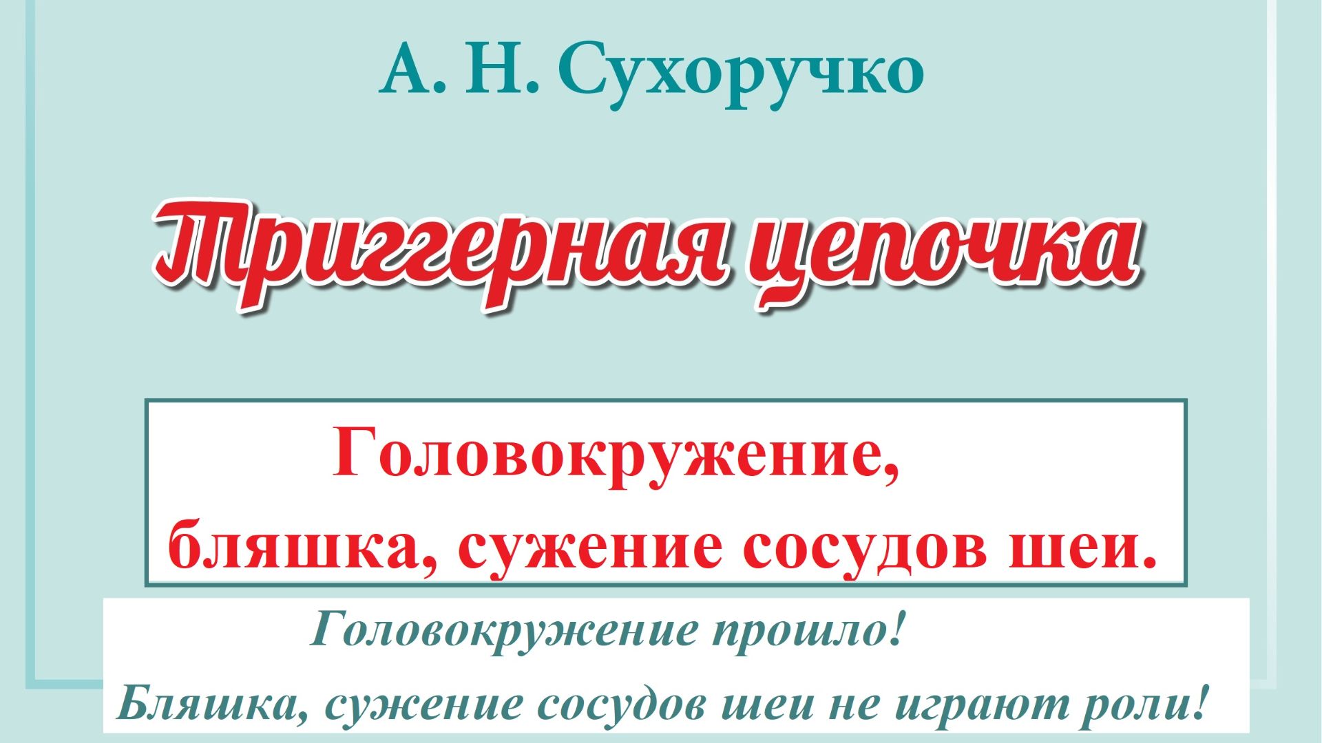 Головокружение, бляшка, сужение сосудов шеи. Триггерная цепочка Сухоручко А.Н.