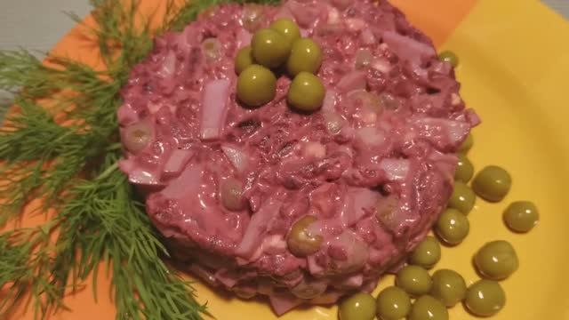 Простой салат из свеклы с яйцом и зеленым горошком