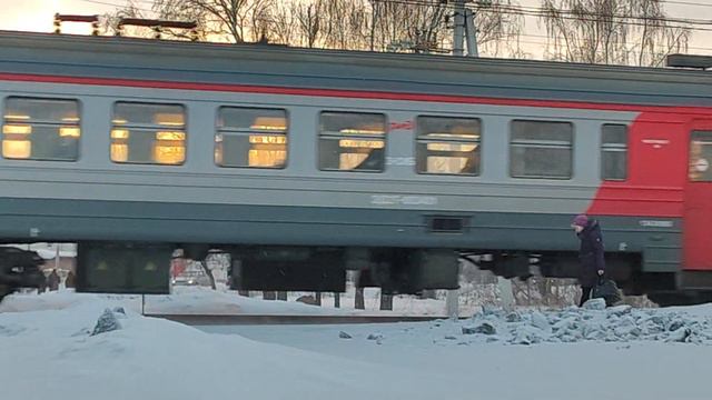 Электропоезд ЭД2Т-0034 (Приписан ТЧПРИГ-32 Новосибирск (ЗСЖД)) сообщением №6621 Новосибирск-Главный - Искитим отправляется с о.п. Совхоз Бердский. Западно-Сибирская железная дорога. Новосибирская область. 25.01.2022