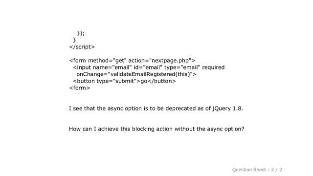 jQuery : How do I do a jQuery blocking AJAX call without async = false?