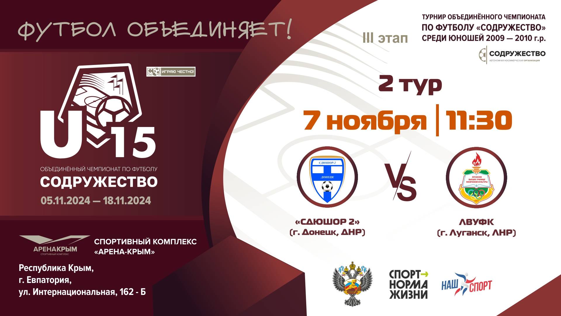 2 ТУР | U-15 | СДЮШОР 2 (г. Донецк, ДНР) vs ЛВУФК (г. Луганск, ЛНР)
