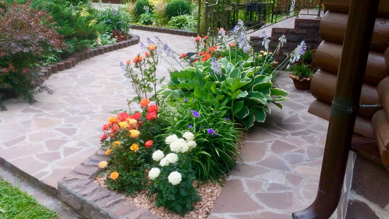 РАБАТКА ЮГ С ВЕСНЫ ДО ОСЕНИ. Каменная отсыпка по геотекстилю. Хосты. Розы. Дачный креатив.