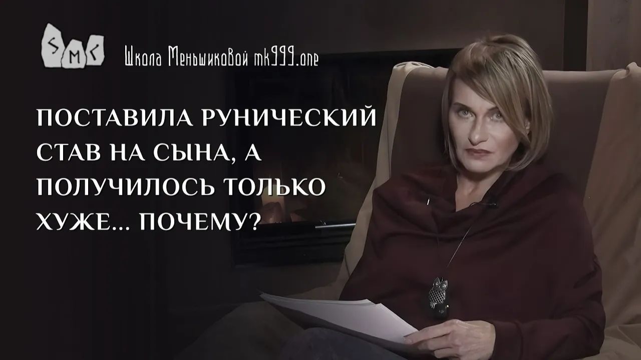 “Поставила рунический став на сына, а получилось только хуже… Почему?” Полгода назад пришлось с сайта "Чёрная магия и руны", на свой страх и риск, срочно поставить на ребёнка став "Забудь меня, военкомат". Простоял он полгода на фото сына, и сейчас у него началось прогрессивное психическое отклонение. Подозреваю, что в ставе переклад болезни, если ещё и не с подселением. У меня нет опыта определить получен ли переклад через этот став или какие другие причины повлияли и снять я точно не могу, тем более, если там есть подселение. Я в панике. Может быть, сможете что-то посоветовать? Как снять у сына острое состояние, вернуть прежнее здоровое психическое состояние? Что могло произойти и что, скорее всего, произошло, как я это вижу. Вряд ли в ставе есть какой-то переклад. Хотя, конечно, на него надо посмотреть, я его не знаю, не видела. На сайт “Чёрная магия и руны” серьёзные люди иногда заходят и если бы там что-то было в этом ставе неправильного, они бы это заметили и указали. И причём так громко достаточно, все бы услышали. Мне кажется, что дело в другом. Став непрогляда призван защищать, то есть делать невидимым, незримым, обходить вниманием некий объект защиты. На кого-то защитные формулы и вообще защита в виде непрогляда действует хорошо, то есть, как записано, не видят, не слышат и ладно, но не для всех. Дело в том, что подобный став, если его применять не совсем правильно, не совсем по-умному, может закрыть человека от неких жизненных обстоятельств, которые ему пройти надо по судьбе и по карме. Продолжение в видео “Поставила рунический став на сына, а получилось только хуже… Почему?”
