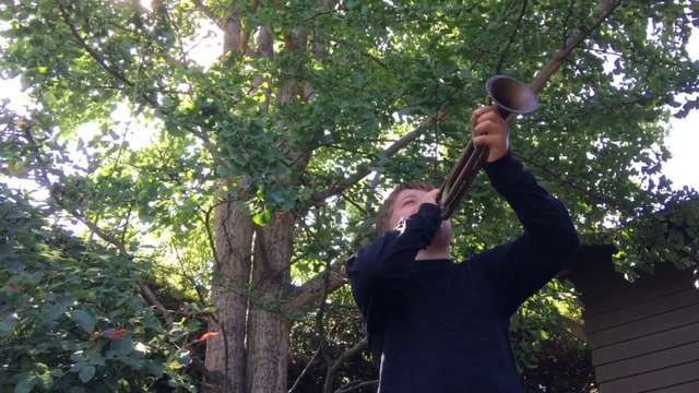 Точнее, пытается. Но пока получается плохо. #дети #труба #музыка #фейл #прикол