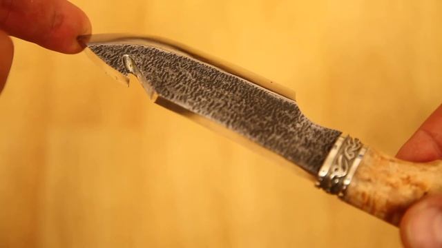Нож разделочный Бобр с клинком из кованой 9ХС стали. Режущая кромка нагартована и сведена в ноль. Рукоятка ножа имеет анатомическую форму под правую и левую руку. www.knife-klinok.ru