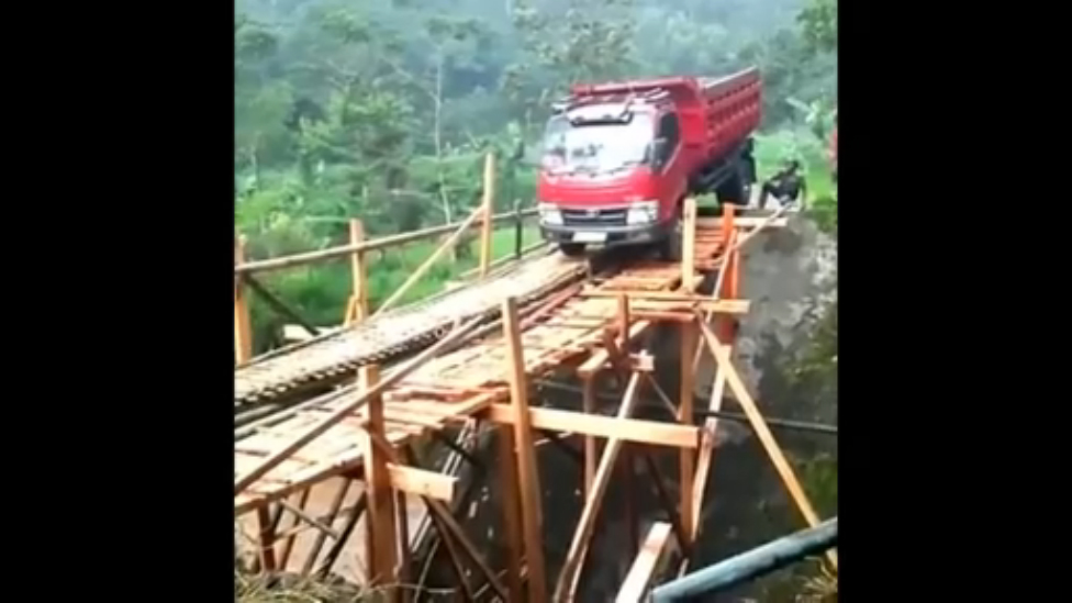 Деревянный мост. Грузовик. Что может пойти не так?