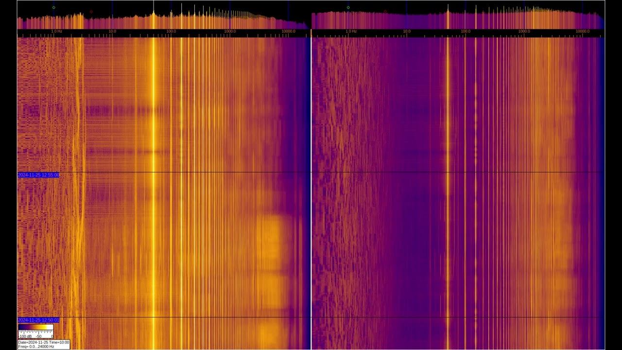 The left and right signals are taken from inductive sensors with ferromagnetic elements, but the left one is additionally connected to grounding on 2 stainless steel pins buried 1 m and spaced 1 m apart. You can see a large number of harmonics from the power supply and various artificial signals. Of interest are signals at frequencies below 50 Hz, where you can observe the operation of specialized equipment and communication signals of submarines and underground objects. Separately, it is worth considering signals in the region of 1-3 Hz on the left spectrum, which relate to the geomagnetic background, which is modulated by solar activity, They can be viewed in more detail in the video called “Signals from the Earth,” which are in the playlists below. The sound in the video is recorded in real time - a signal from sensors. О ПРОИСХОЖДЕНИИ ЧАСТОТНОЙ МОДУЛЯЦИИ СЕРПЕНТИННОЙ ЭМИССИИ https://youtu.be/bwWHggY1IVU?si=xAX1diRKI9MxQJ88&t=1740 Previous monitoring is in playlists: EMF monitor https://youtube.com/playlist?list=PLiRg2YCbXcwn41BHqADKVBep_TgVq6XUN Очень Низкая Частота ~ Very Low Frequency https://youtube.com/playlist?list=PLiRg2YCbXcwnp5DxM4PnSs7k_Rnypaqek SIGNALS IN THE GROUND https://youtube.com/playlist?list=PLiRg2YCbXcwl6f3Bf5arHbGSOCNE5U71O поддержать канал: 8-999-654-93-44