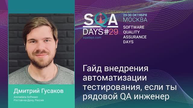 SQA Days 29 — Dmitry Gusakov, Гайд внедрения автоматизации тестирования, если ты рядовой QA инженер