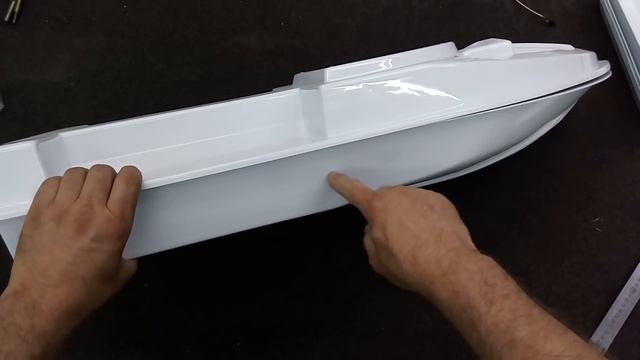 Корпус размером 870×360×190( высота без учёта защиты винта и ручки ). Бункера по 1.42 л . дно глиссирующее . Формован весь ( возможно кроме крышки) из полистирола 3 мм. Цена 4870 р без дополнительной обработки .