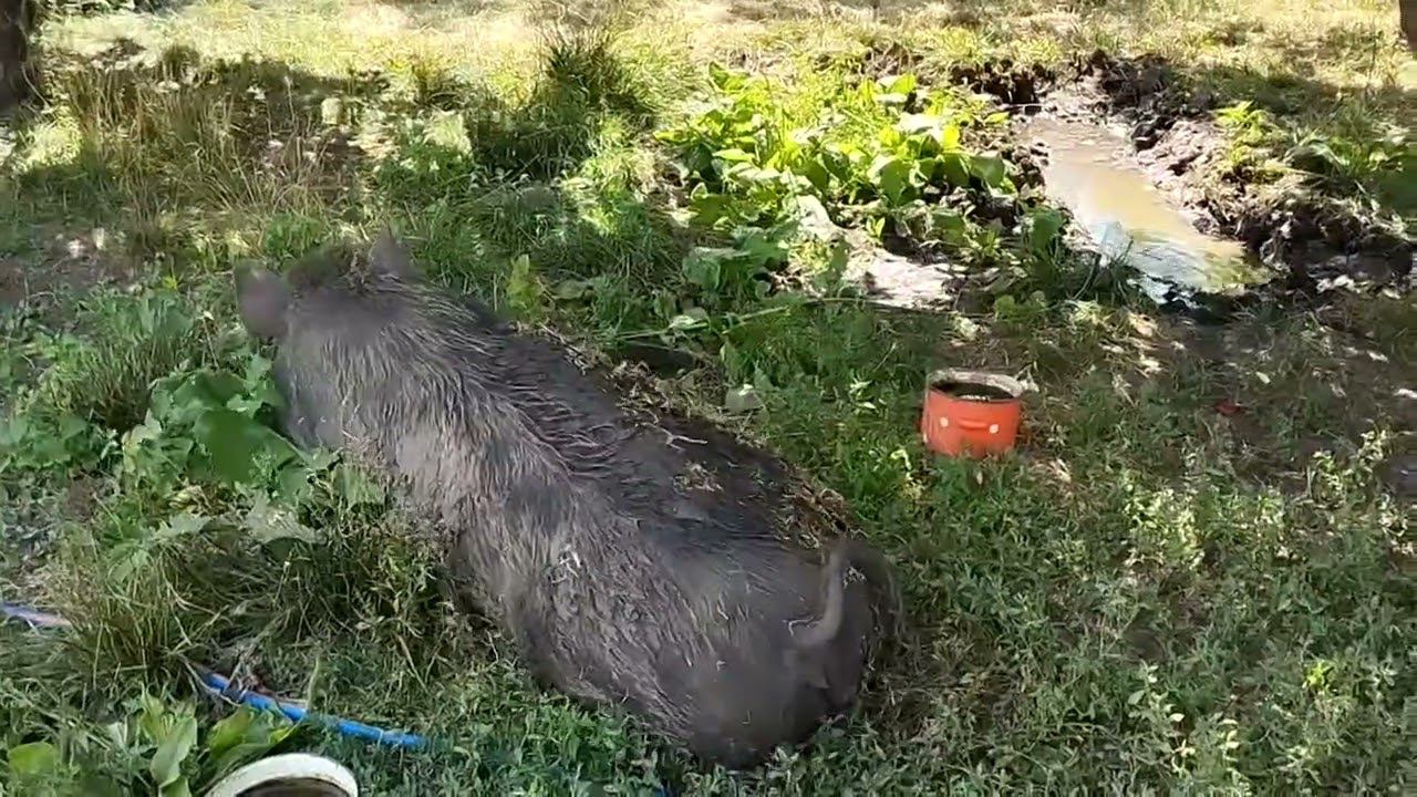 Наша Хрюша балдеет в теньке